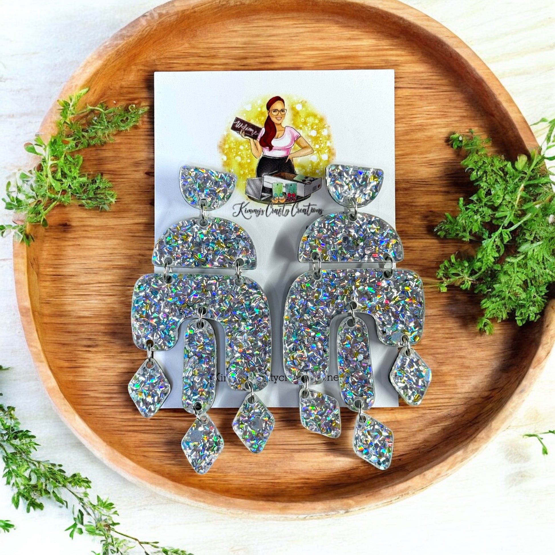 Add a pop of futuristic sparkle with these Holographic Statement Post Dangles! Crafted from laser-cut acrylic, they shimmer with every movement, catching light from every angle. Lightweight and comfortable, they hang from hypoallergenic posts, perfect for sensitive ears. Fun, bold, and dazzling, these earrings are ready to brighten up any outfit with a playful edge.