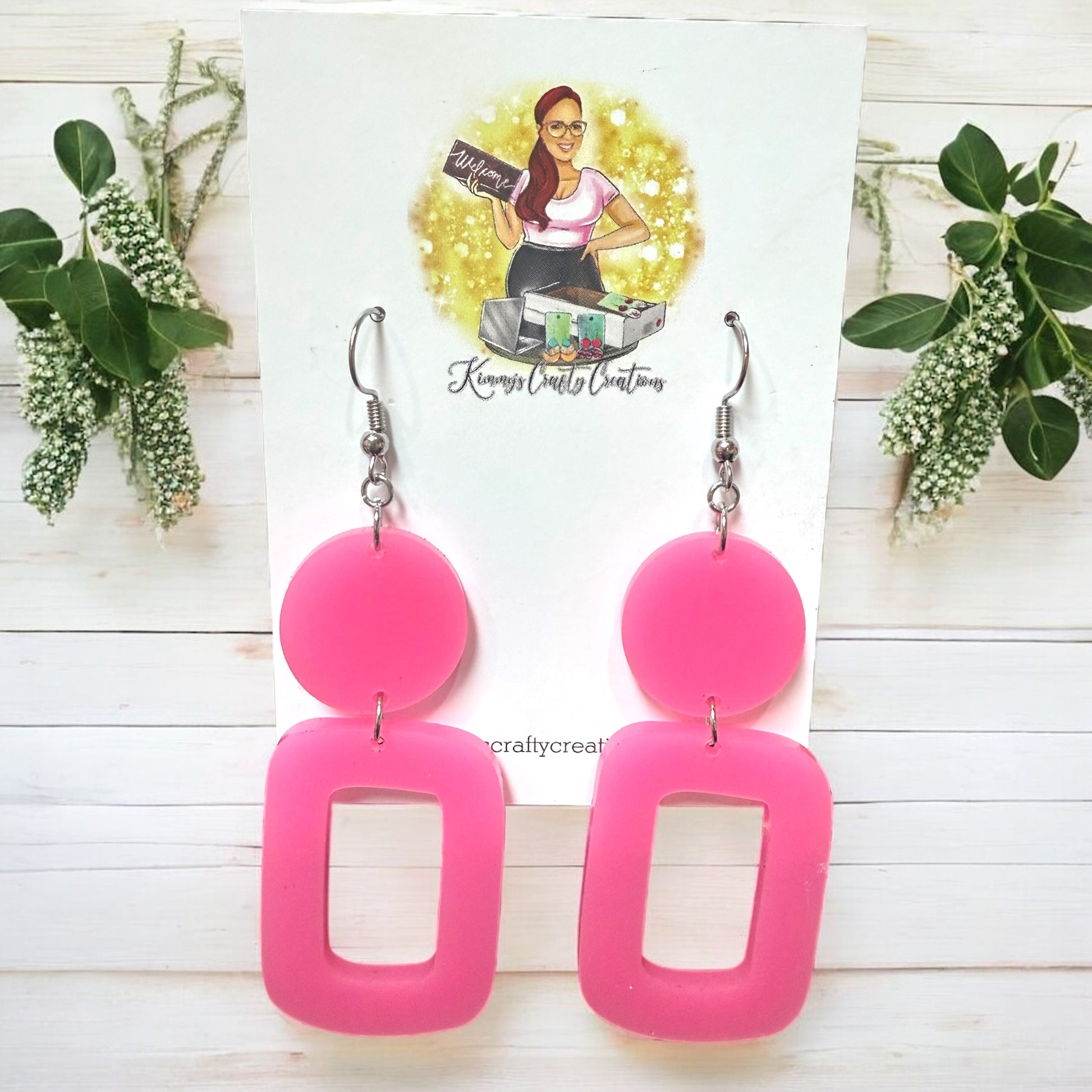 Neon These Neon Pink Acrylic Abstract Boho Shape Earrings are not only a stylish addition to any outfit, but also hypoallergenic with fish wire hooks. Expertly crafted with high-quality acrylic, they offer a lightweight option for all-day wear. Elevate your look easily with these statement earrings.