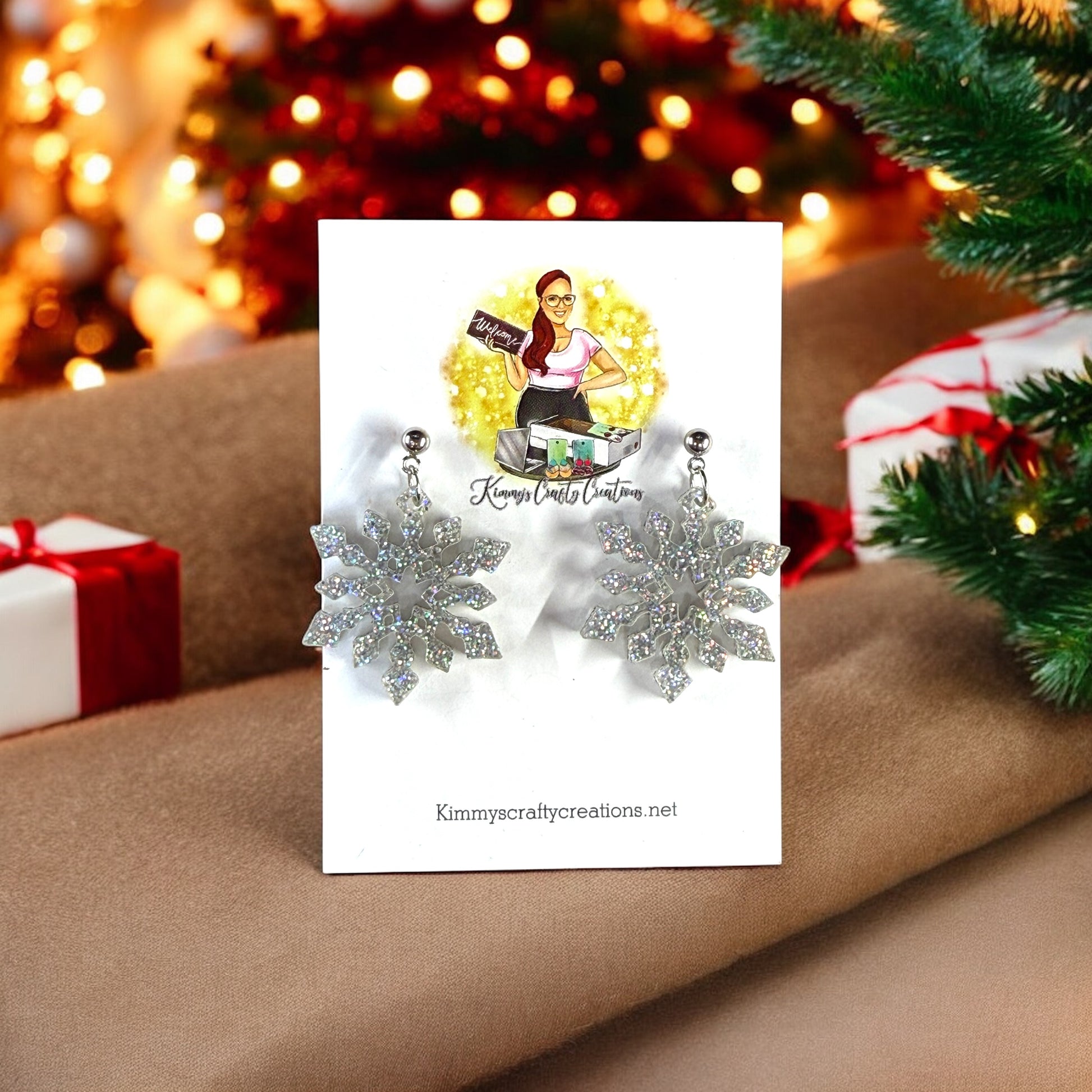 These Silver Holographic Snowflake Earrings are expertly crafted with laser cut acrylic and hypoallergenic ball stud hardware. The holographic snowflake design adds a touch of sparkle and charm to any outfit. Made with care and precision, these earrings are perfect for those with sensitive ears.